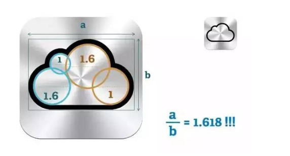 Apple的另一个产品iCloud也是由具有黄金比例的四个圆构建而成,整体的logo也同样符合黄金比例。