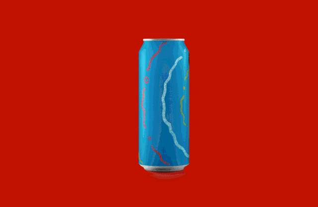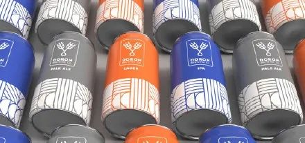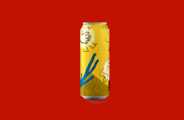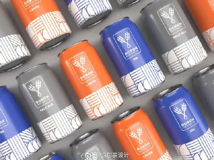 纯色与几何线条插图构成的啤酒包装